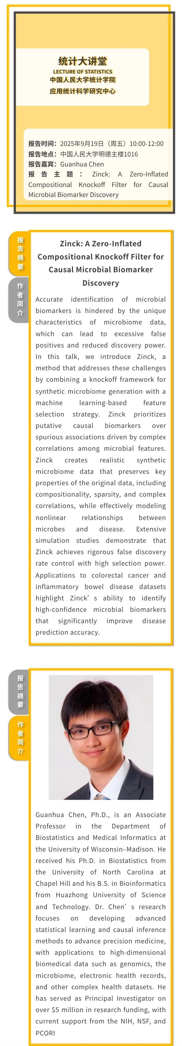 “统计大讲堂”第282讲预告:Zinck:基于Knockoff过滤方法针对高零值组成型数据的因果微生物标志物筛选