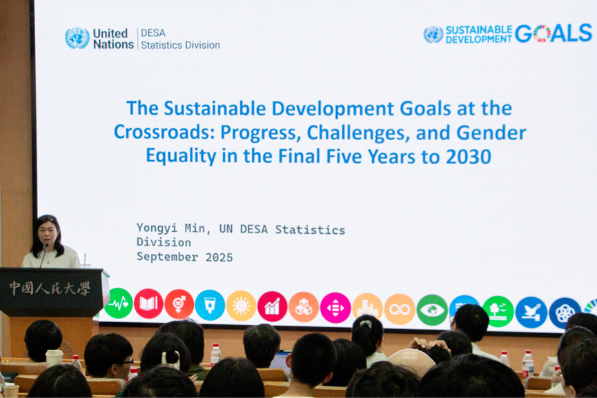 9月24日,闵永怡以“可持续发展目标的十字路口:到2030年最后五年的进展、挑战与性别平等”为题作会前专题讲座。来自中国国家统计局系统、兄弟高校和中国人民大学的近200位嘉宾共同探讨了联合国可持续发展目标统计测度的进展与挑战。